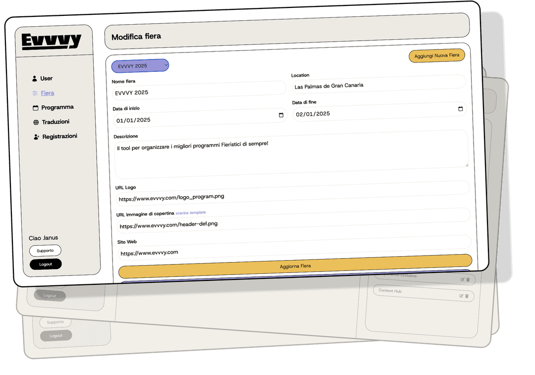 Inserisci tutti i dettagli della tua manifestazione fieristica e inizializza un programma